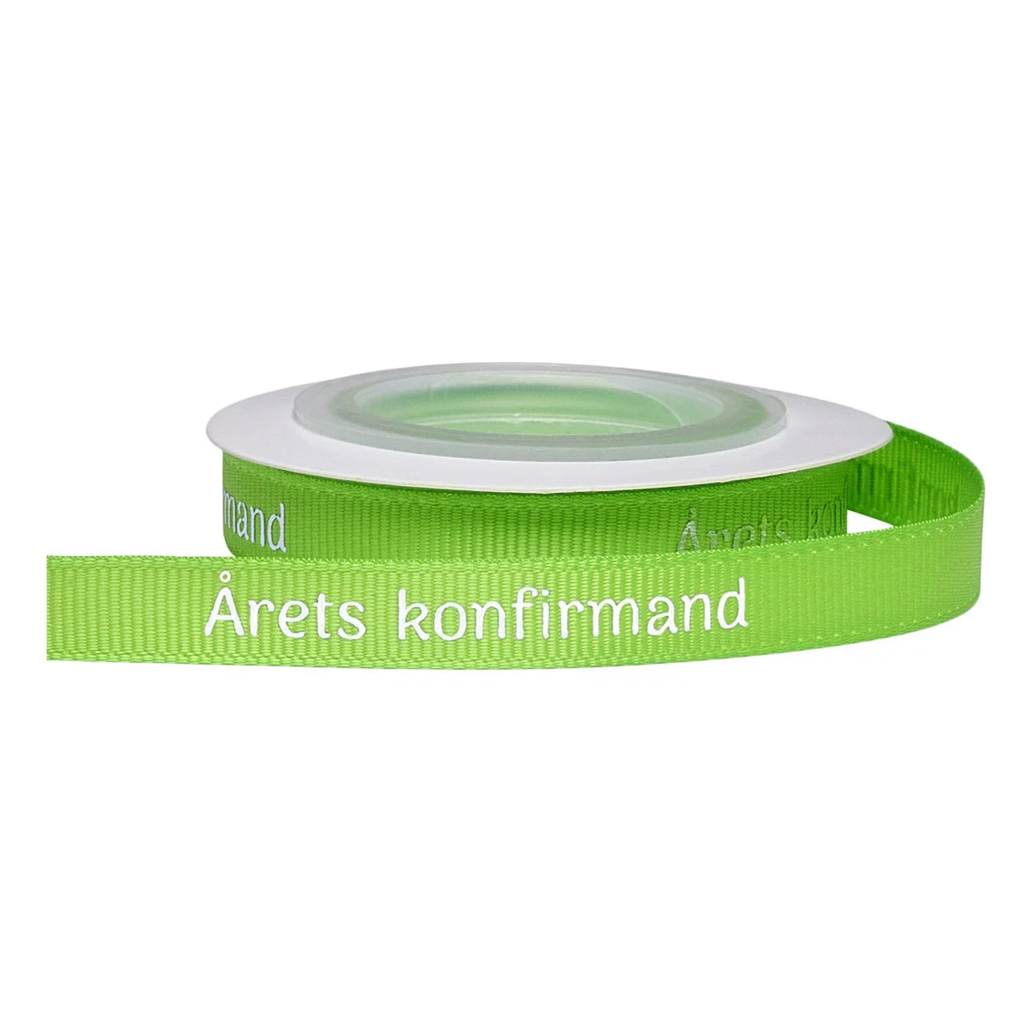 Bånd Årets Konfirmand limegrøn/sølv 1cm x 5m