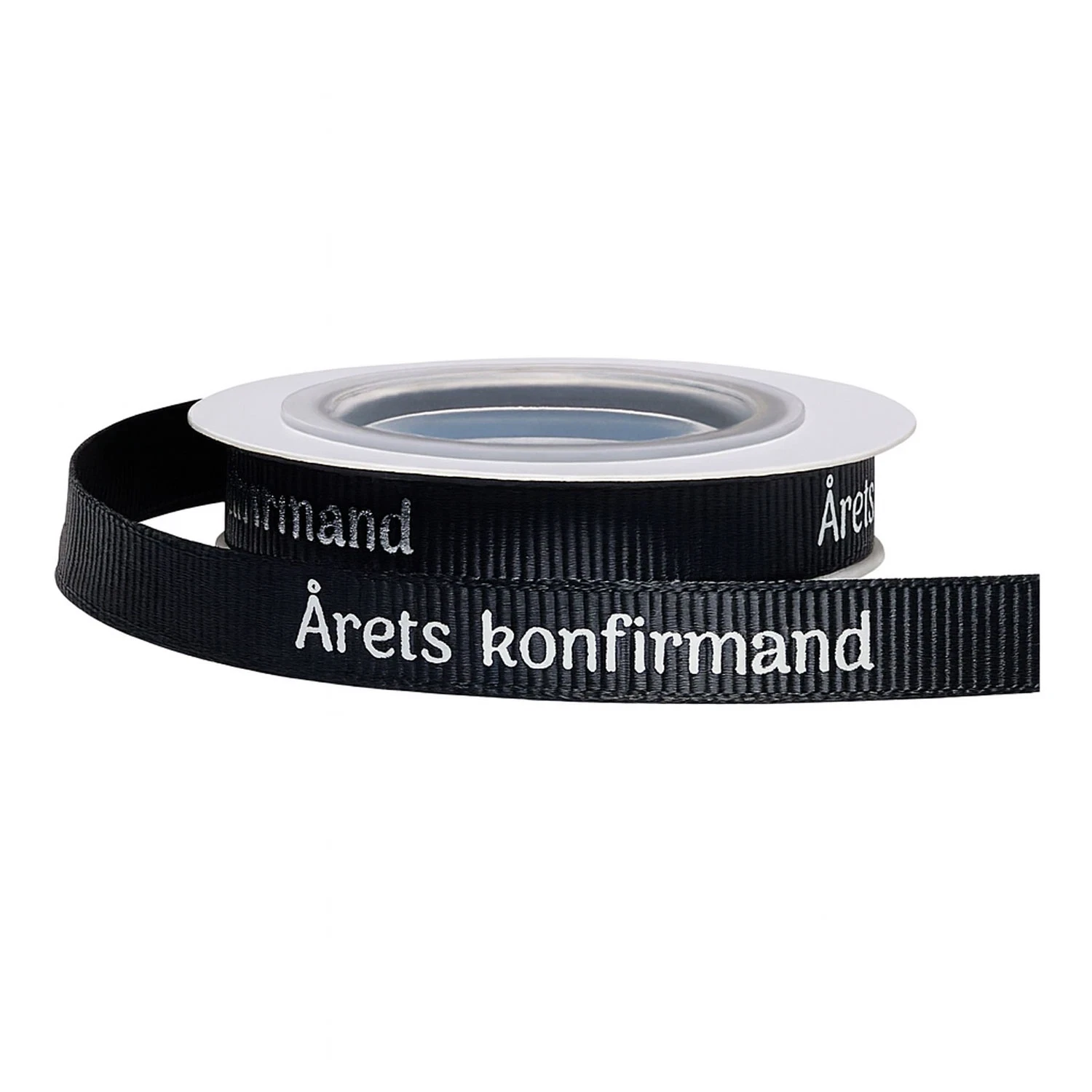 Bånd Årets Konfirmand sort/sølv 1cm x 5m konfirmationspynt