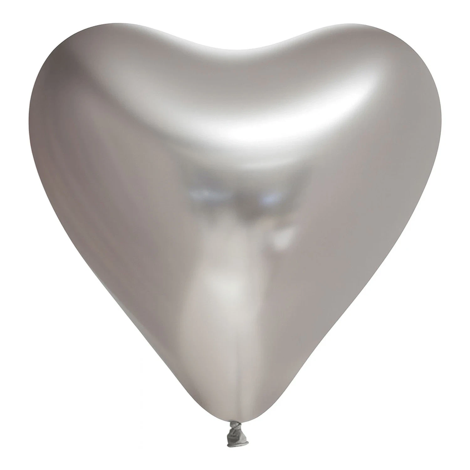 Balloner Hjerte sølv chrome 30cm, 6 stk.
