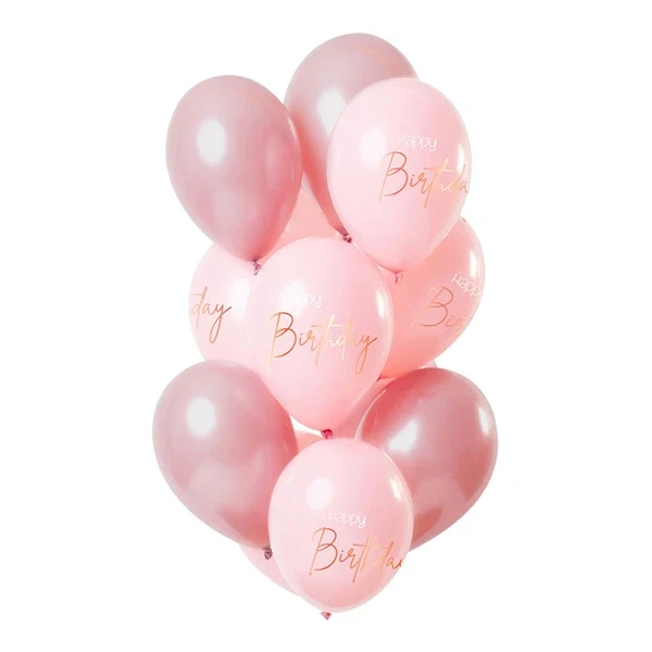 Balloner Mix Happy Birthday lyserød/rosa 33cm, 12 stk.