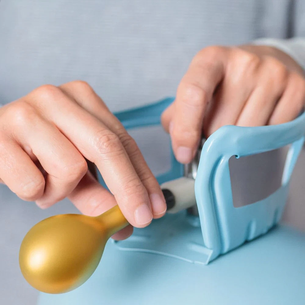 • Når ballonen har den ønskede størrelse, slipper du ventilen og tager forsigtigt ballonen af.