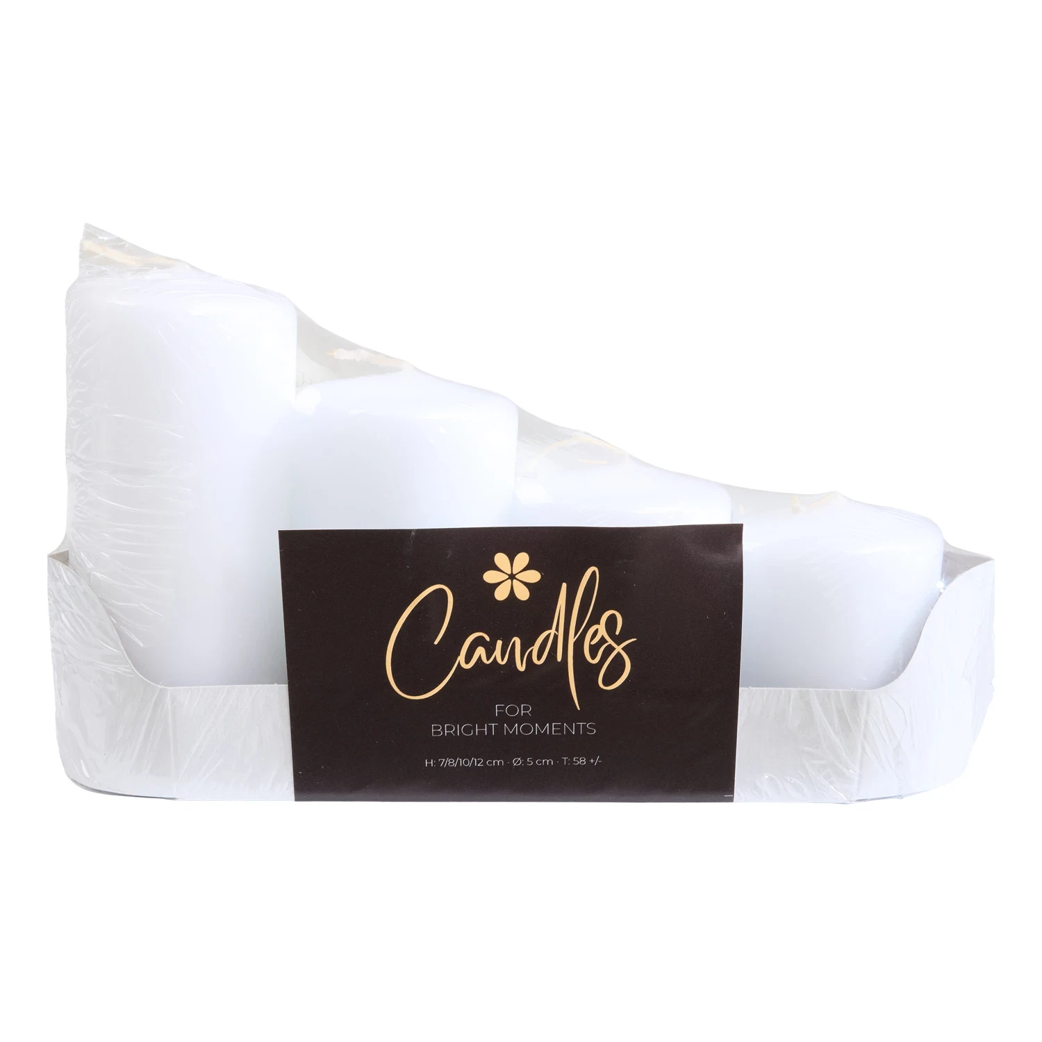 Bloklys hvid mix, 4 stk. stearinlysBloklys hvid mix, 4 stk. borddækning