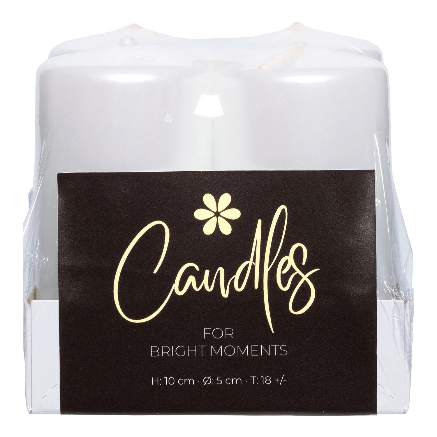 Bloklys perlehvid 5cm x 10cm, 4 stk. stearinlysBloklys perlehvid 5cm x 10cm, 4 stk. borddækning