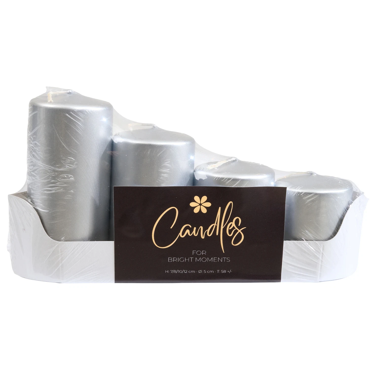 Bloklys sølv mix, 4 stk. stearinlysBloklys sølv mix, 4 stk. borddækning