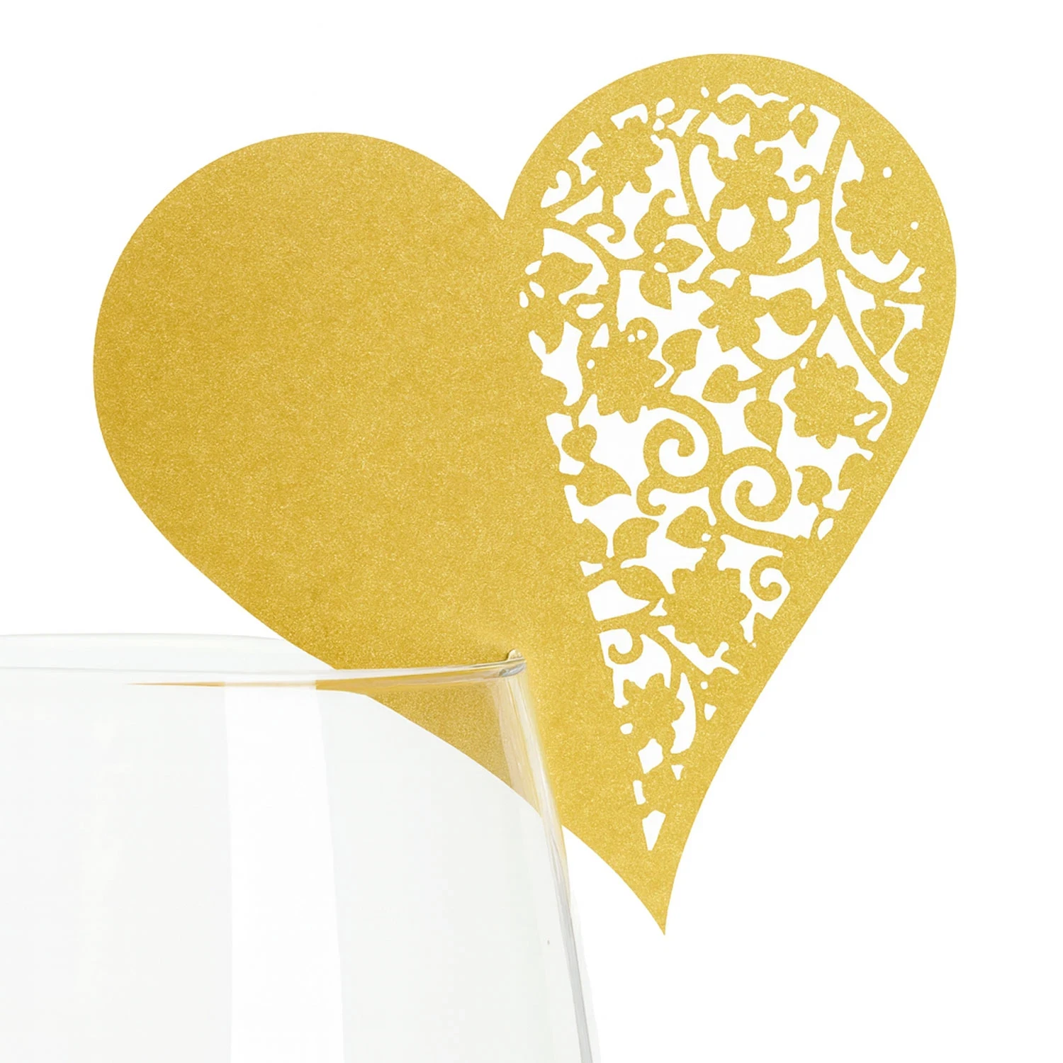 Bordkort Hjerte guld perlemor, 10 stk. borddækning
