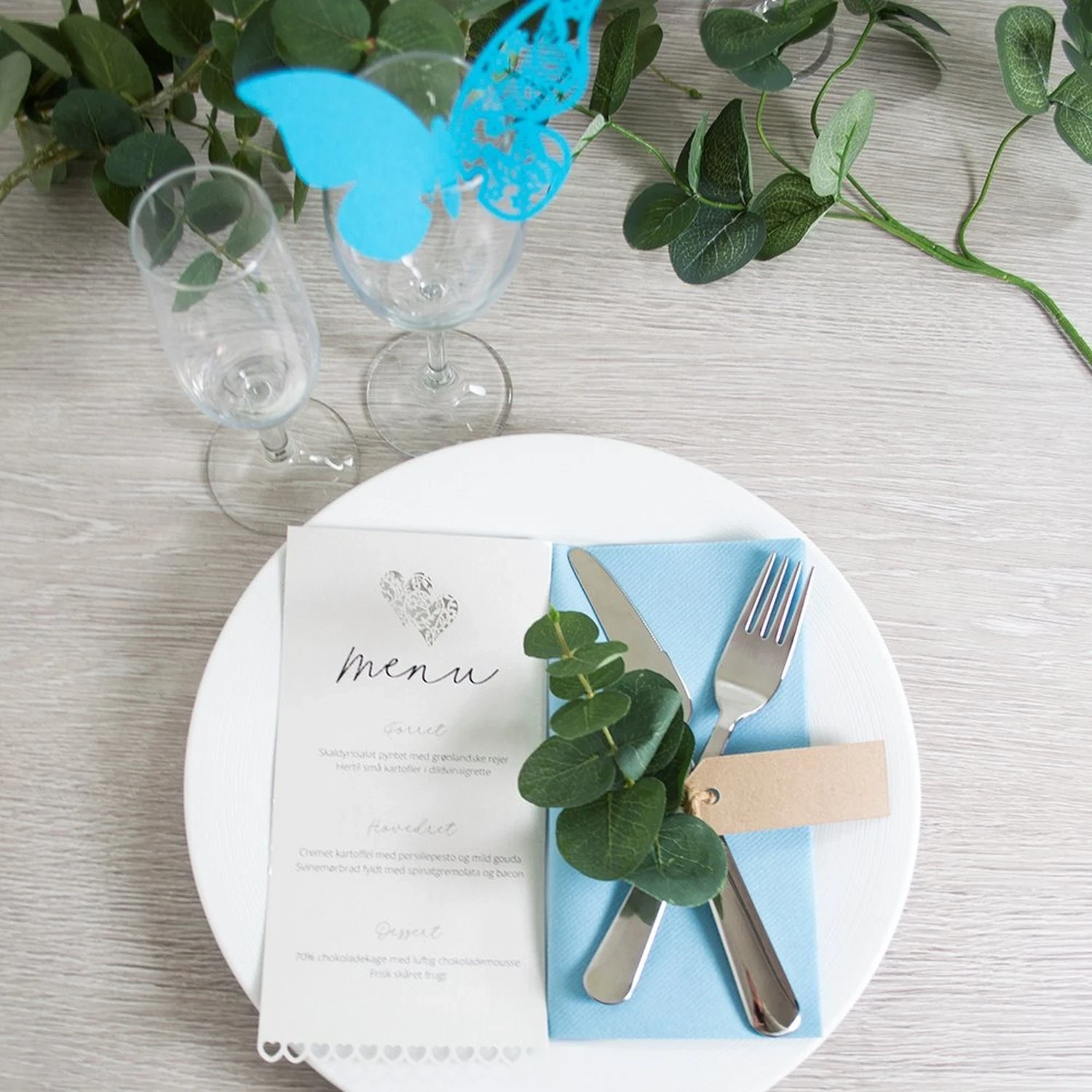Bordkort Sommerfugl aquablå, 10 stk. borddækningBordkort Sommerfugl aquablå, 10 stk. bordpynt