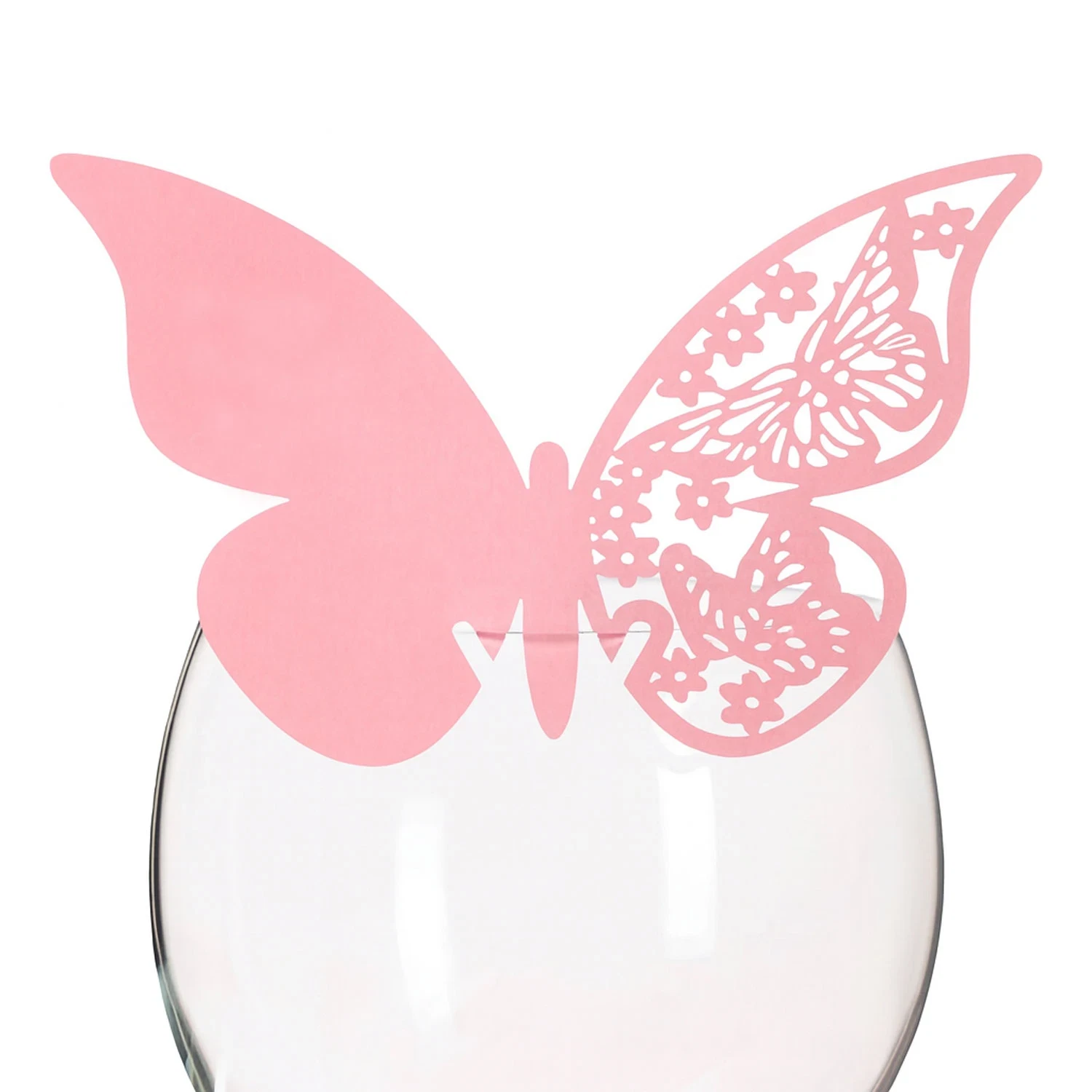 Den kunstfærdige udskæring af sommerfuglen skaber et let og luftigt udtryk, der vil imponere gæsterne. På den ene vinge er der plads til at skrive gæstens navn. Sommerfuglen måler 7,5 cm i højden, og du får 10 stk. for prisen.