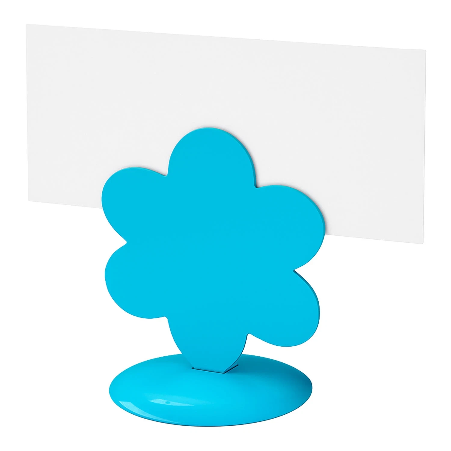 Denne flotte, turkise bordkortholder, der er formet som en blomst, vil passe perfekt på festbordet til barnedåben, fødselsdagen, konfirmationen eller en anden festlig lejlighed. Den kan også bruges til menuen eller til at sætte navn ved alle retterne på buffeten. Bestil så mange du skal bruge i dag, og få dem hurtig leveret.
