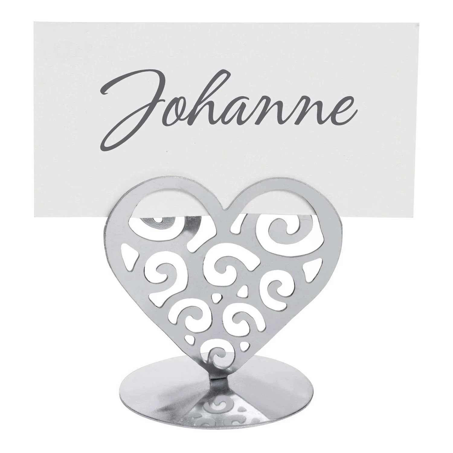 Hver bordkortholder er omhyggeligt udformet i en smuk hjerteform med ornamentale udskæringer, der fungerer som en clips til sikker fastholdelse af bordkortet.