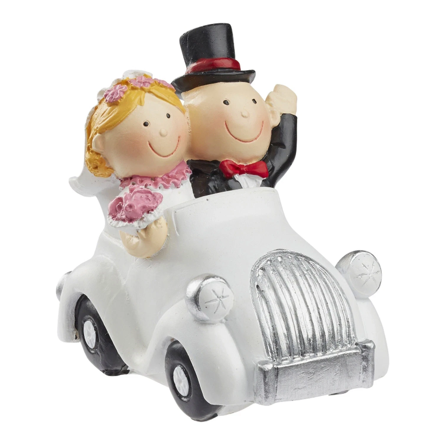 Bryllupsfigur Brudepar i hvid bryllupsbil festartikler