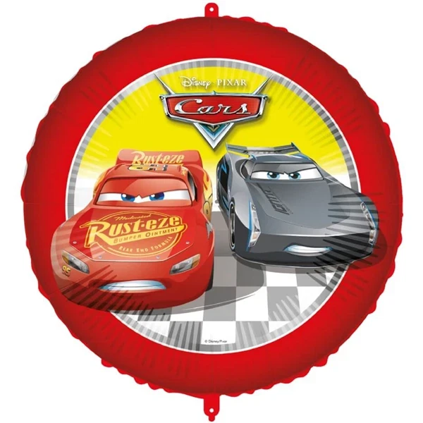 Disney Cars rund folie ballon 45 cm med Lightning McQueen og Jackson Storm til børnefødselsdag og Cars temafest.