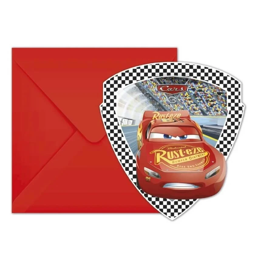 Disney Cars indbydelser med kuvert – 6 stk invitationer til børnefødselsdag