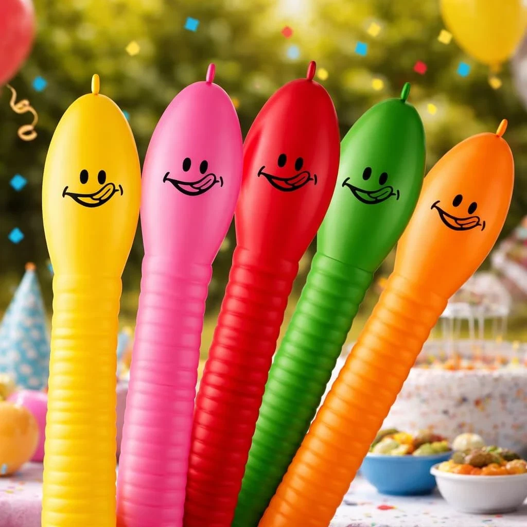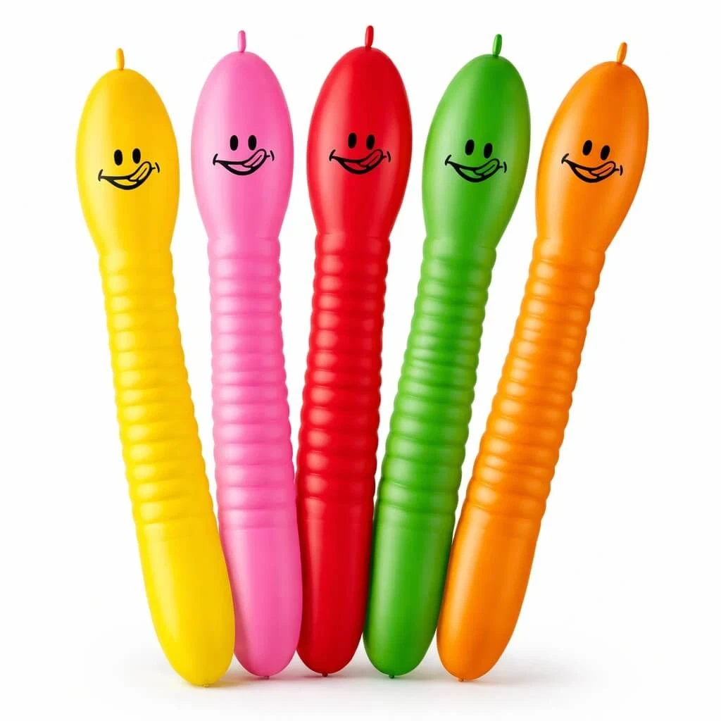 Det er lange latexballoner formet som larver, som bruges til pynt og leg.