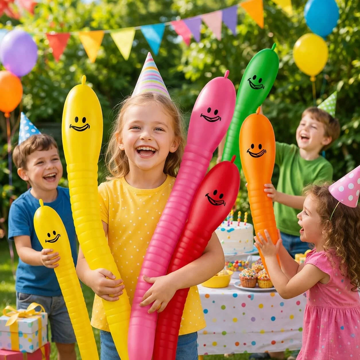 Gør børnefødselsdagen sjovere, farverig og helt unik med disse lange figur balloner i larveform!