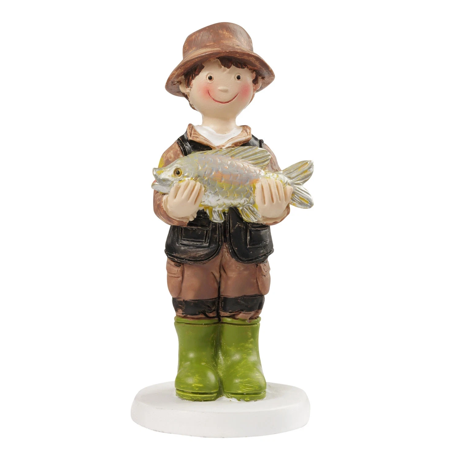 Pynt festbordet med den glade og charmerende lystfisker, som er stolt af sin fangst. Figuren står stabilt på en fod.