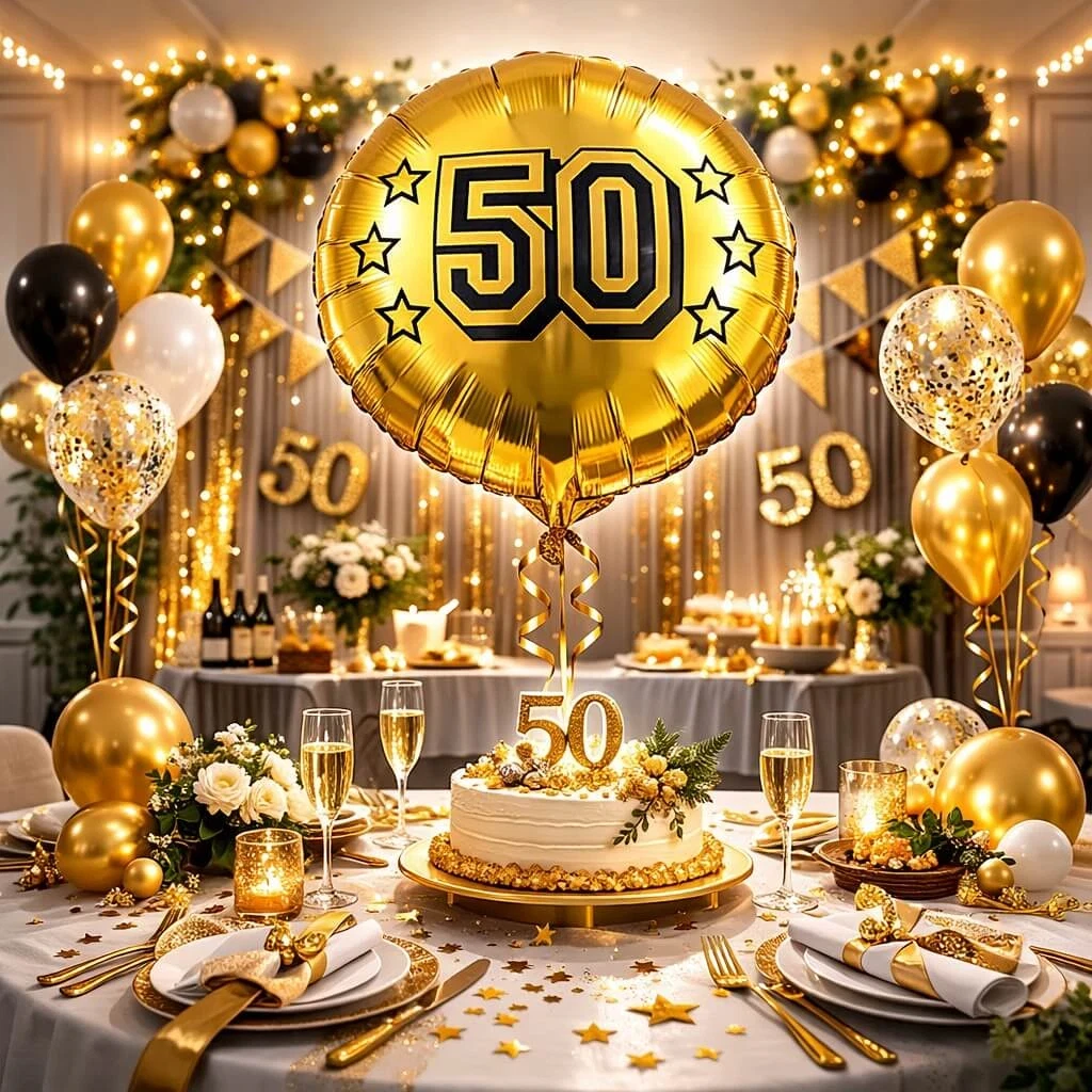 Skab en uforglemmelig fejring af de 50 år med en stilfuld ballon, der straks signalerer fest og fejring.