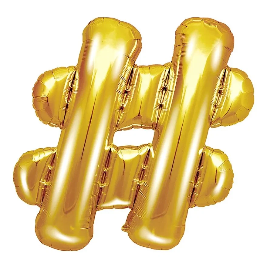 Folieballon bogstav # guld 35cm bogstavballonerFolieballon bogstav # guld 35cm festpyntFolieballon bogstav # guld 35cm navneballoner