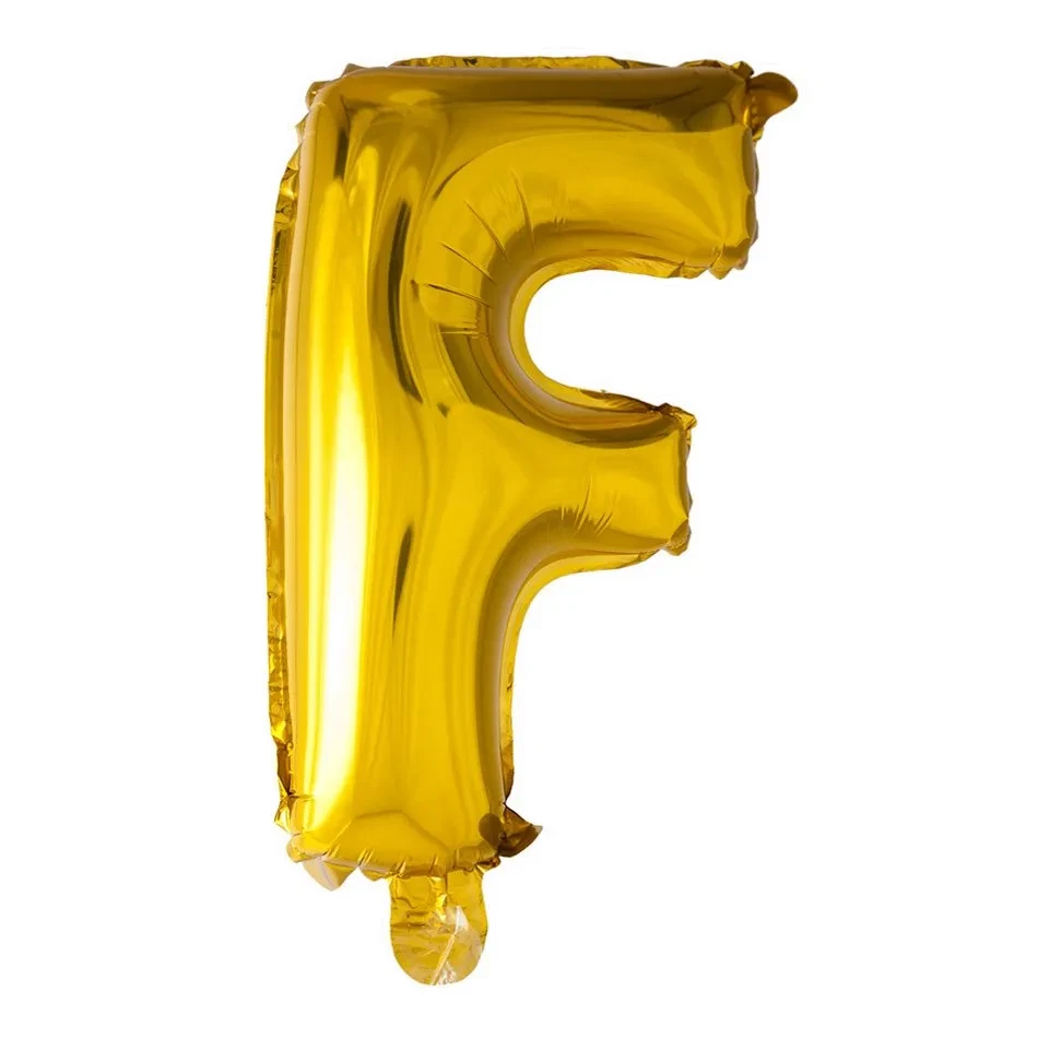Folieballon bogstav F guld 41cm festpyntFolieballon bogstav F guld 41cm bogstavballoner