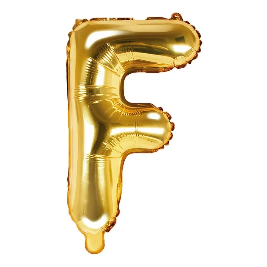 Folieballon bogstav F guld 35cm bogstavballonerFolieballon bogstav F guld 35cm festpyntFolieballon bogstav F guld 35cm navneballoner