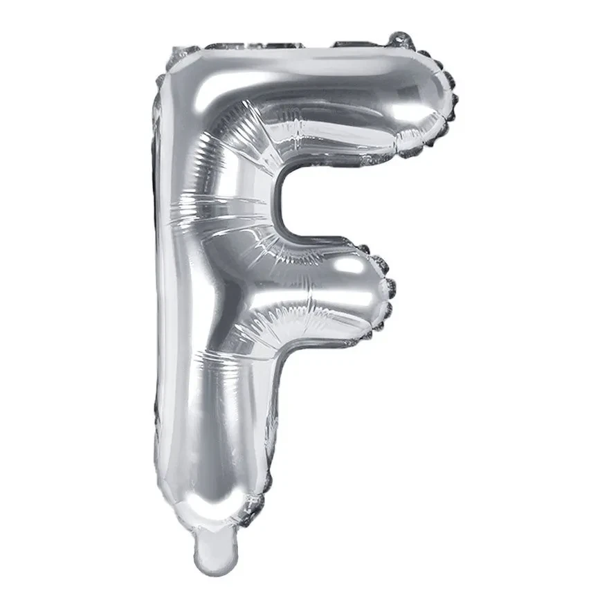 Folieballon bogstav F sølv 35cm bogstavballonerFolieballon bogstav F sølv 35cm festpynt