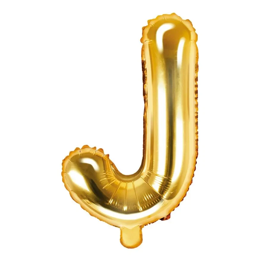 Guld folieballon bogstaver "J" 35cm bogstavballonerFolieballon bogstav J guld 35cm festpyntFolieballon bogstav J guld 35cm navneballoner