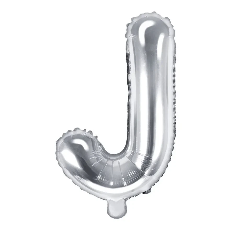 Folieballon bogstav J sølv 35cm bogstavballonerFolieballon bogstav J sølv 35cm festpynt