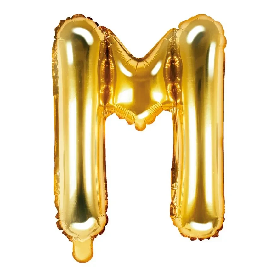 Folieballon bogstav M guld 35cm bogstavballonerFolieballon bogstav M guld 35cm festpyntFolieballon bogstav M guld 35cm navneballoner