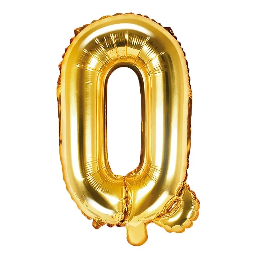 Folieballon bogstav Q guld 35cm bogstavballonerFolieballon bogstav Q guld 35cm festpyntFolieballon bogstav Q guld 35cm navneballoner