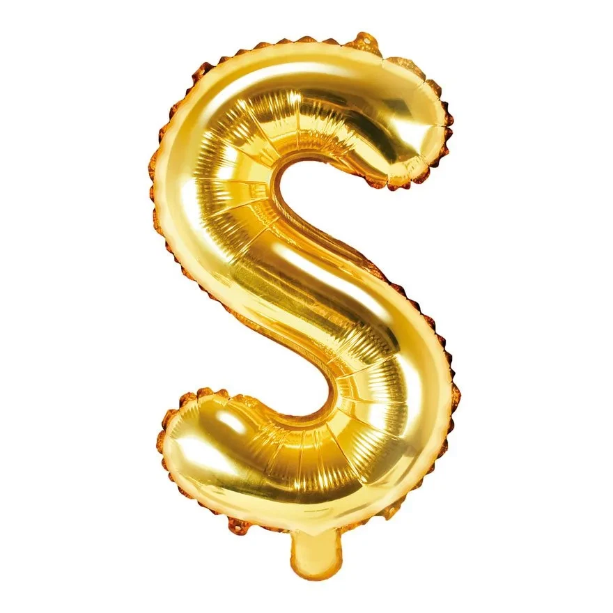 Folieballon bogstav S guld 35cm bogstavballonerFolieballon bogstav S guld 35cm festpyntFolieballon bogstav S guld 35cm navneballoner