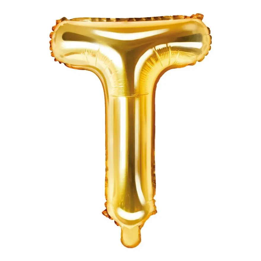 Folieballon bogstav T guld 35cm bogstavballonerFolieballon bogstav T guld 35cm festpyntFolieballon bogstav T guld 35cm navneballoner