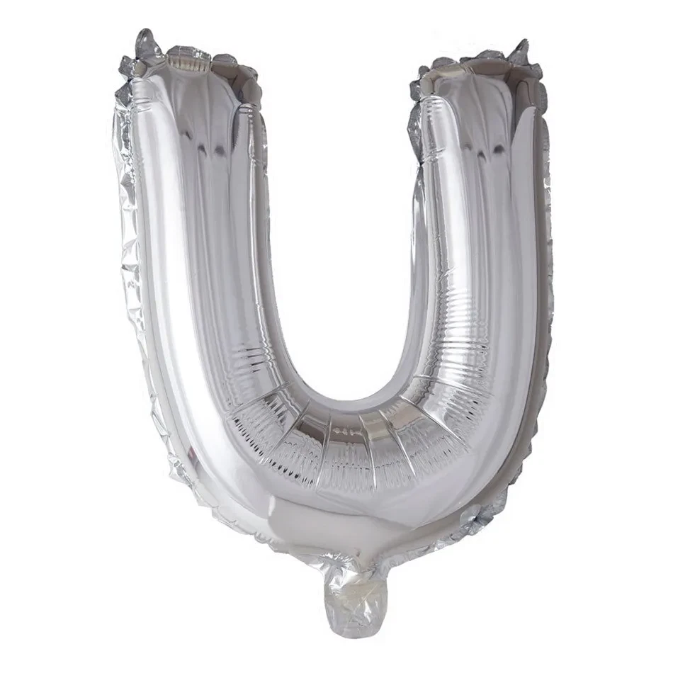 Folieballon bogstav U sølv 41cm festpyntFolieballon bogstav U sølv 41cm bogstavballoner