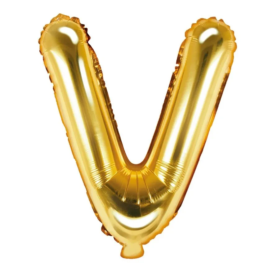 Folieballon bogstav V guld 35cm bogstavballonerFolieballon bogstav V guld 35cm festpyntFolieballon bogstav V guld 35cm navneballoner