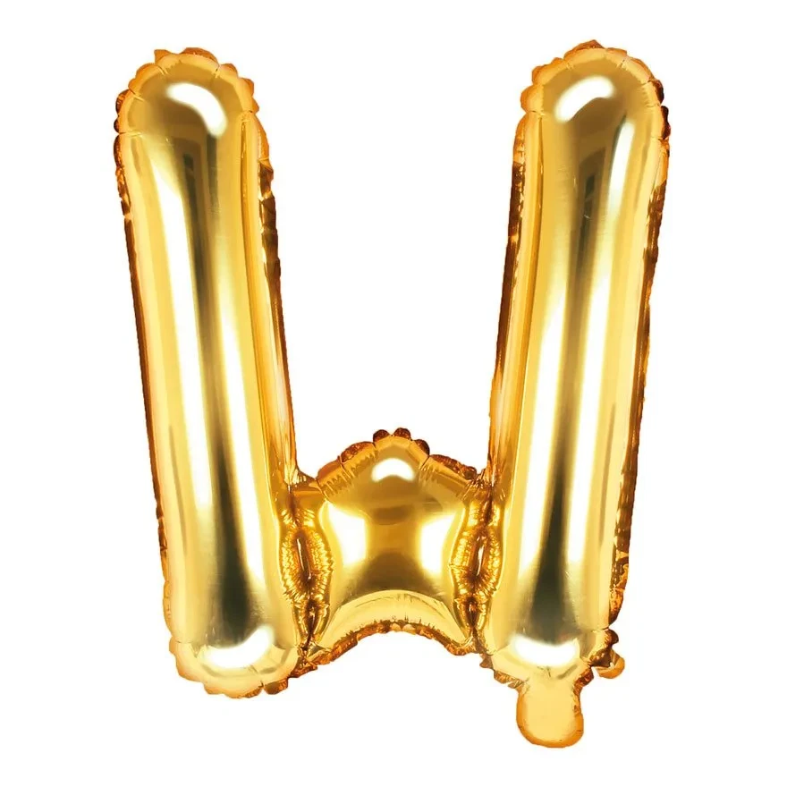 Folieballon bogstav W guld 35cm bogstavballonerFolieballon bogstav W guld 35cm festpyntFolieballon bogstav W guld 35cm navneballoner