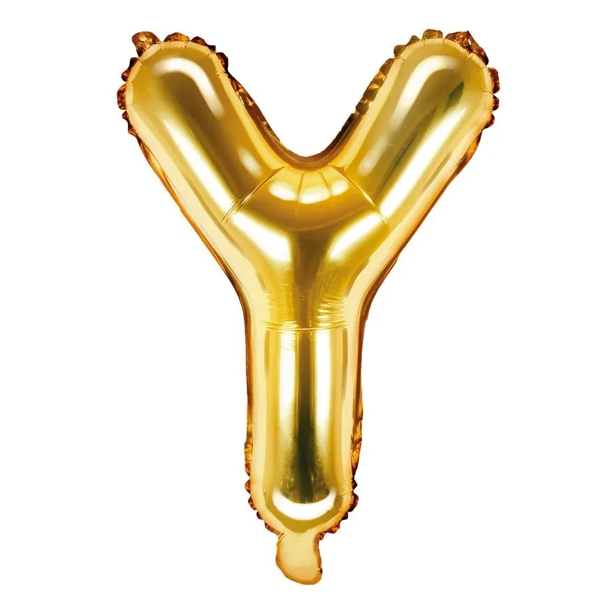 Folieballon bogstav Y guld 35cm bogstavballonerFolieballon bogstav Y guld 35cm festpyntFolieballon bogstav Y guld 35cm navneballoner