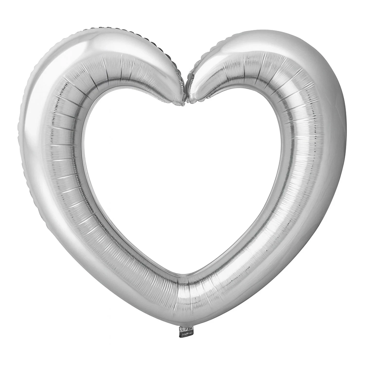 Folieballon Hjerte selfie-ramme sølv 70cm x 80cm festbillederFolieballon Hjerte selfie-ramme sølv 70cm x 80cm festpynt
