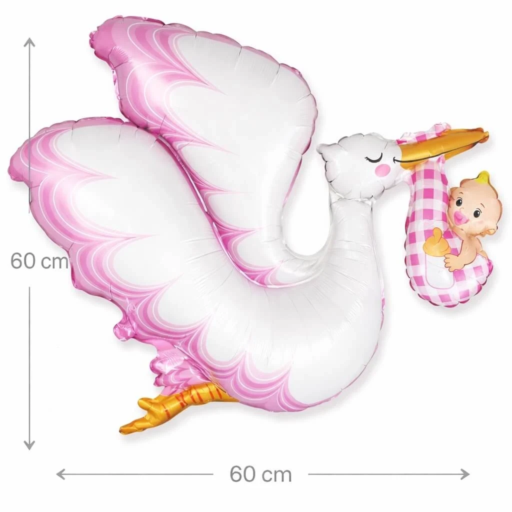 Uanset om du planlægger en hyggelig babyshower eller vil skabe en varm velkomst til en nyfødt pige, er denne storke-folieballon en enkel, men effektfuld dekoration, der spreder glæde og feststemning.