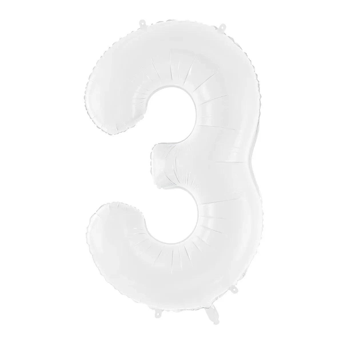 Folieballon tal 3 hvid 86cm festpyntFolieballon tal 3 hvid 86cm talballoner