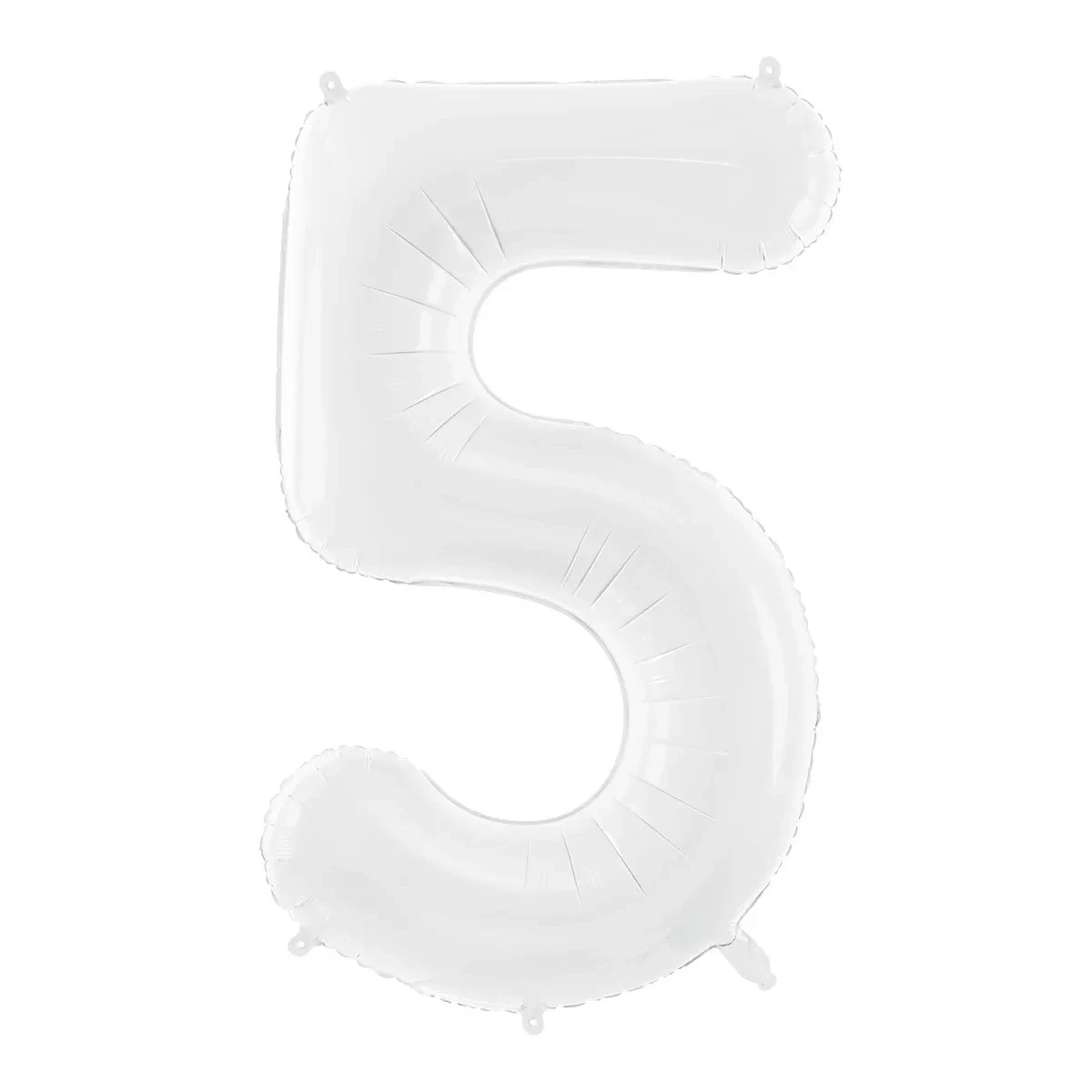 Folieballon tal 5 hvid 86cm festpyntFolieballon tal 5 hvid 86cm talballoner