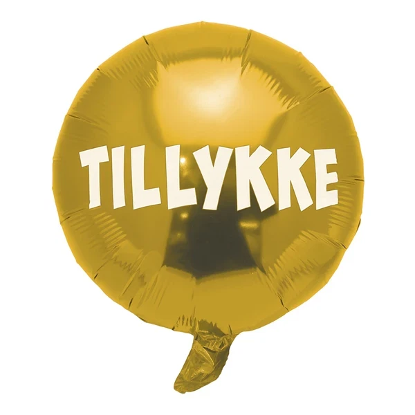 Ønsk tillykke med denne flotte guldfarvede folieballon med hvidt tryk. Den siger det, der skal siges – TILLYKKE – uanset, hvad du ønsker tillykke med. Den har en diameter på 44 cm, så den skaber blikfang. Bestil den i dag, og sig tillykke til en, du holder af.