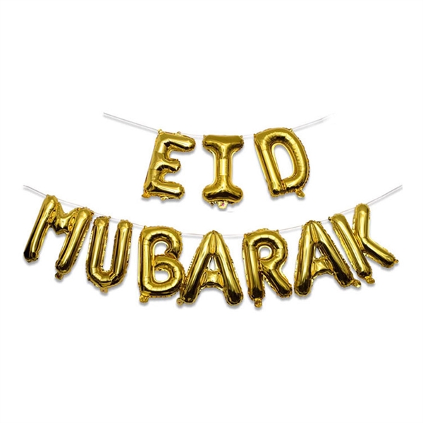 Folieballoner Eid Mubarak guld H: 40cm festartikler