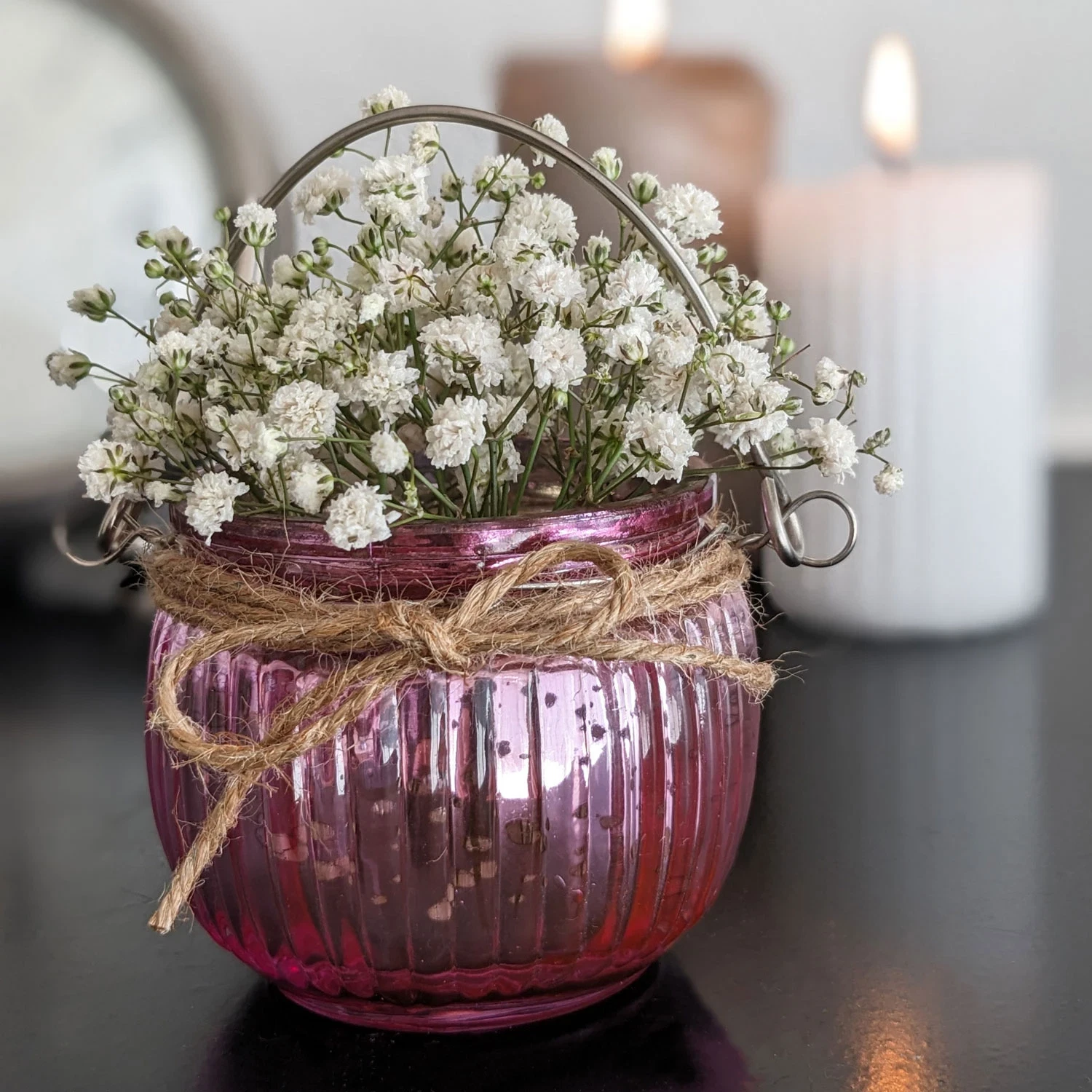 En smuk antik pink fyrfadsstage med hank fra Kija‑Design.dk giver din borddækning den helt rette atmosfære ved fest, bryllup, konfirmation, barnedåb eller fødselsdag. Den lille stage i glas skaber levende stemning med blafrende flamme og kan nemt fremhæves med pynt som et smalt bånd eller friske blomster på bordet. Med en højde på ca. 6,5 cm (uden hank) passer den perfekt til både store og små bord‑arrangementer.