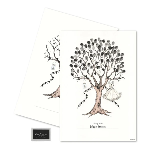 Skab uforglemmelige minder for konfirmanden med denne unikke gæsteplakat. Der medfølger stempelfarve, så det er nemt at tage i brug, når gæsternes skal efterlade deres fingeraftryk, som vil danne bladene på det smukke konfirmationstræ.