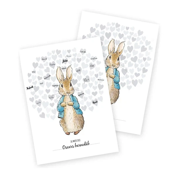 Gæsteplakaten med Peter Kanin er perfekt til en række anledninger såsom barnedåb, babyshower og børnefødselsdage. På plakaten kan gæsterne skrive deres navne og måske endda efterlade en lille hilsen. Det er en fin måde at skabe og bevare minderne på. Plakaten fungerer fremragende i sig selv, men kan også suppleres af en traditionel gæstebog, hvis man ønsker at bevare endnu flere minder.