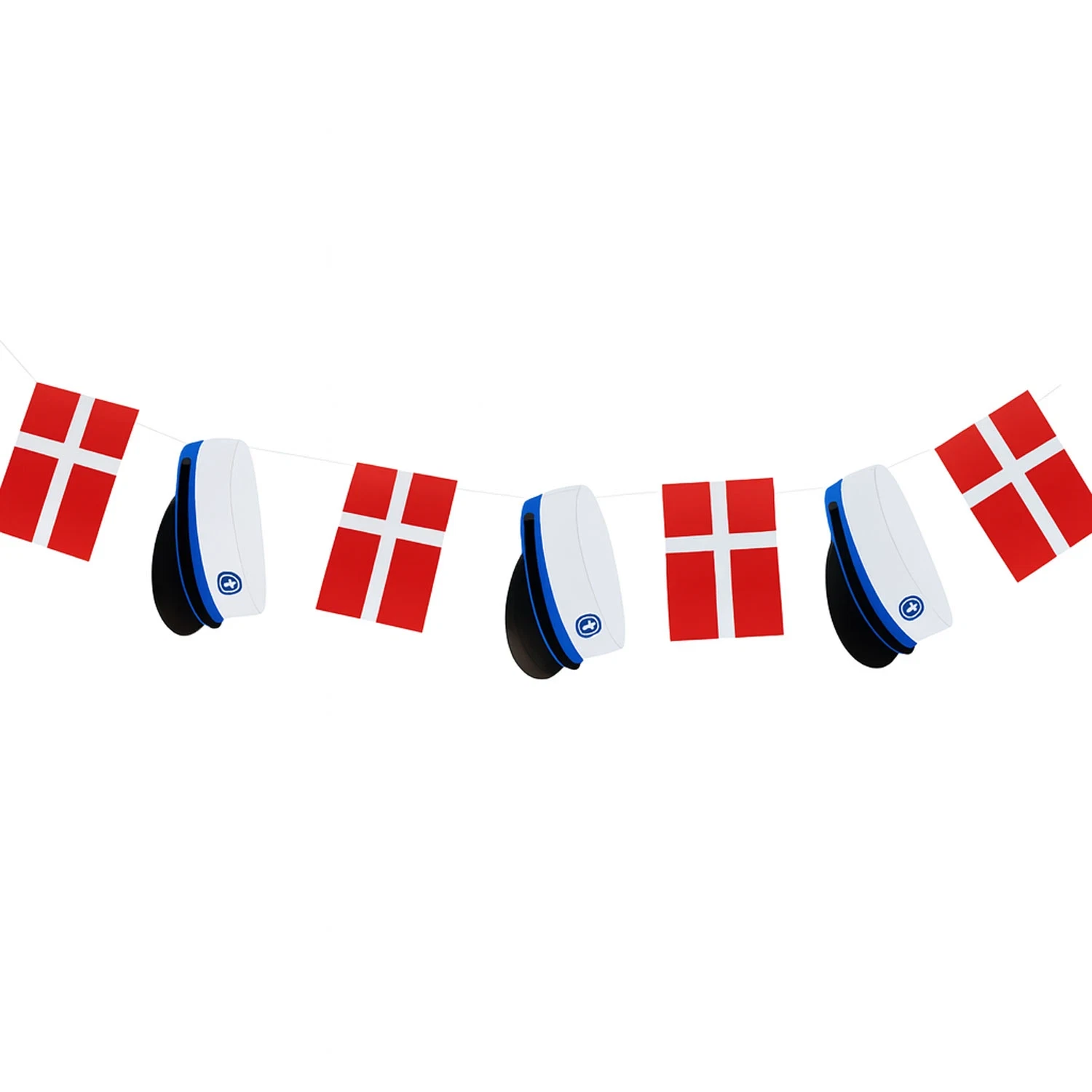 Guirlande Blå studenterhue og flag Dannebrog 16cm x 3m