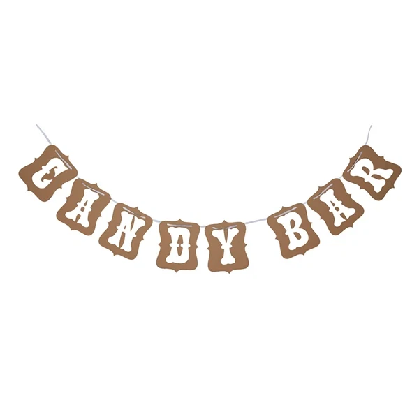 Med denne guirlande er der ingen af dine gæster, der vil være i tvivl om, hvor de skal gå hen, hvis de vil have tilfredsstillet den søde tand. CANDY BAR står der med store bogstaver i bedste westernstil. Bestil banneret i dag, og vis dine gæster vej til alle lækkerierne.