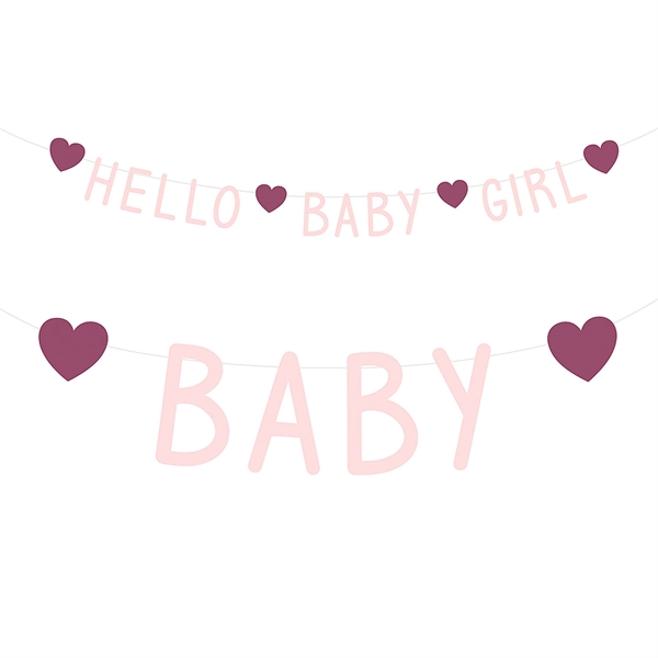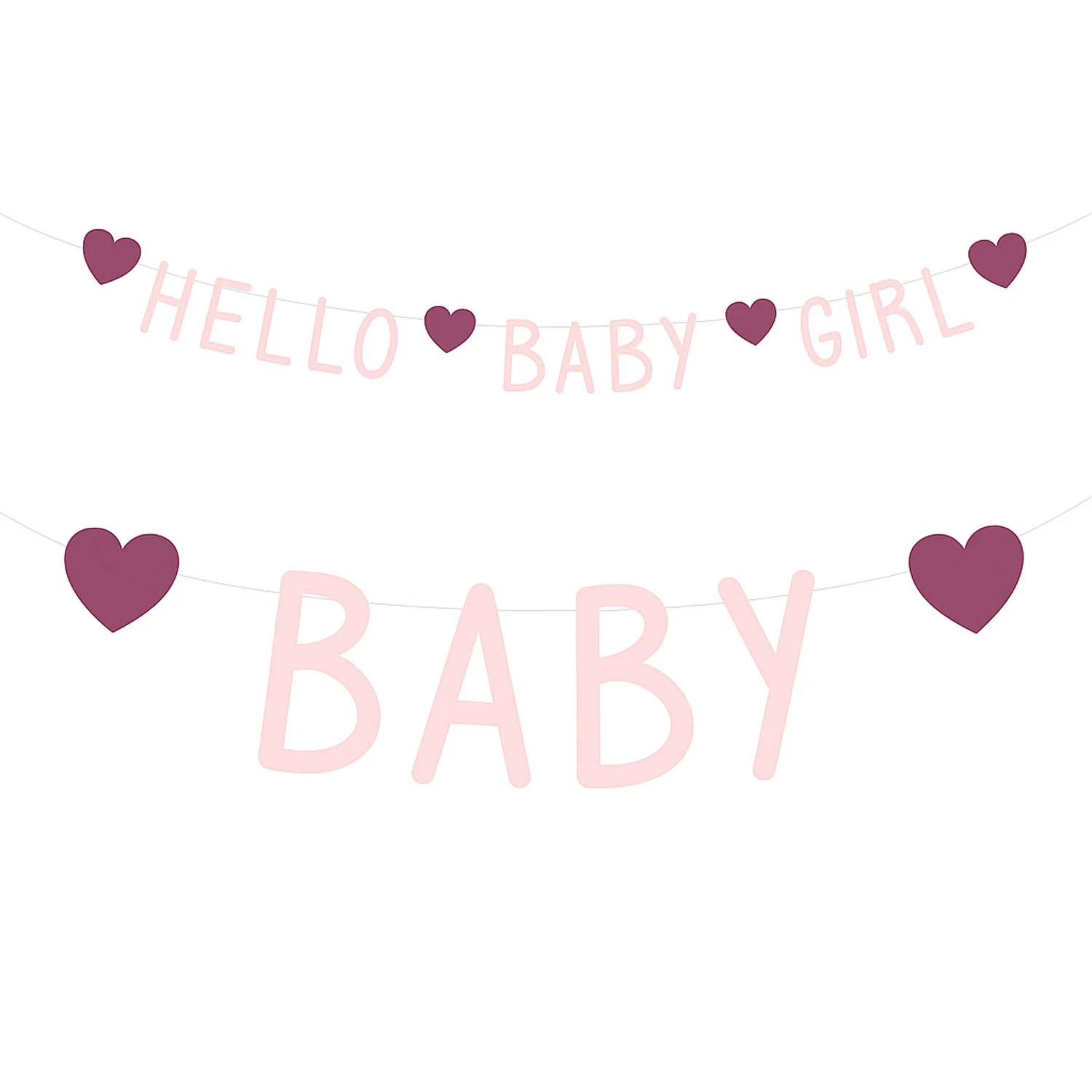 Guirlande Hello Baby Girl lyserød/rød 1,5m babyshower