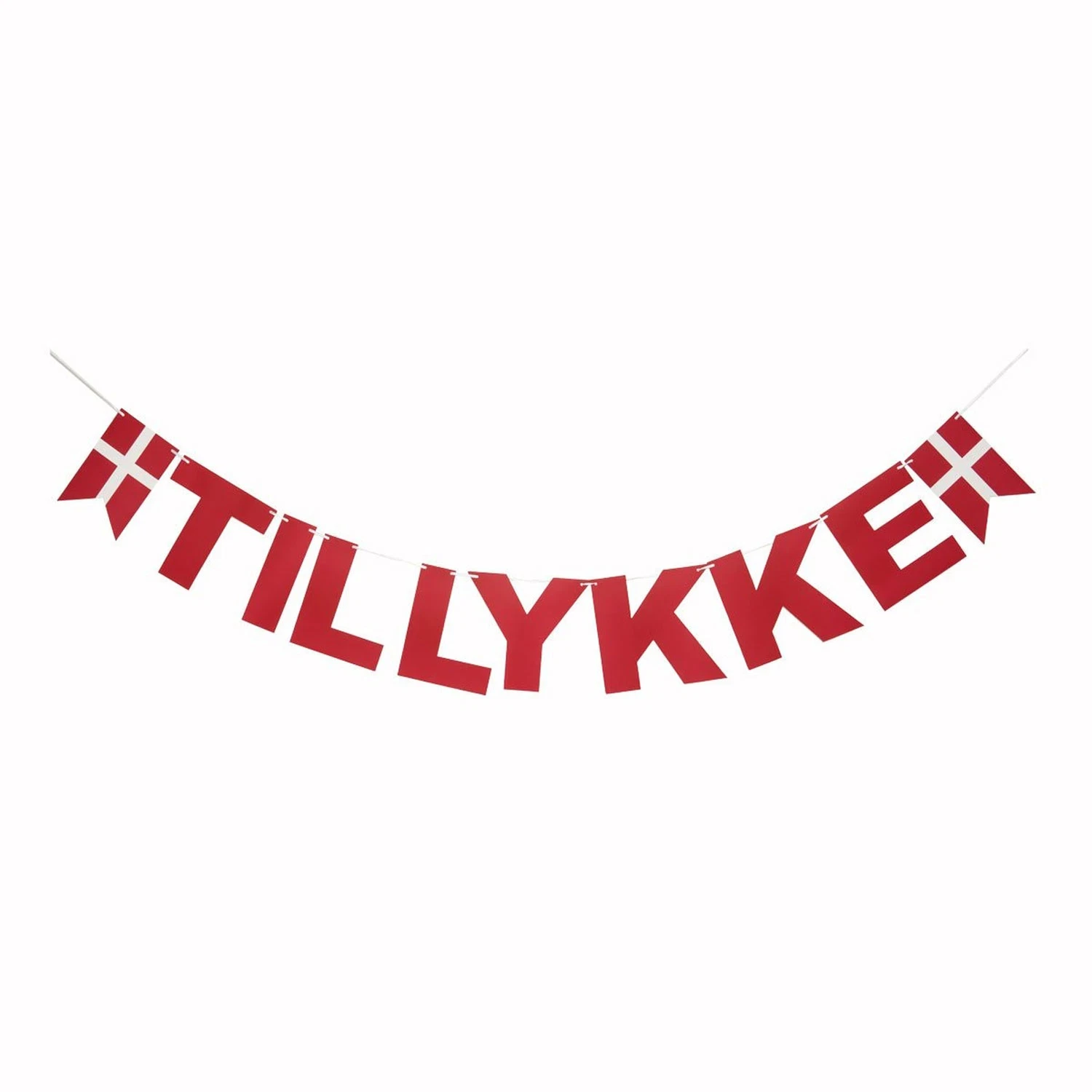 Tillykke guirlanden er perfekt, når du vil ønske tillykke med studentereksamen til den røde student, men også til andre anledninger, som fødselsdag. Guirlanden er i hver ende udstyret med et dannebrogsflag, som laver en flot afslutning.