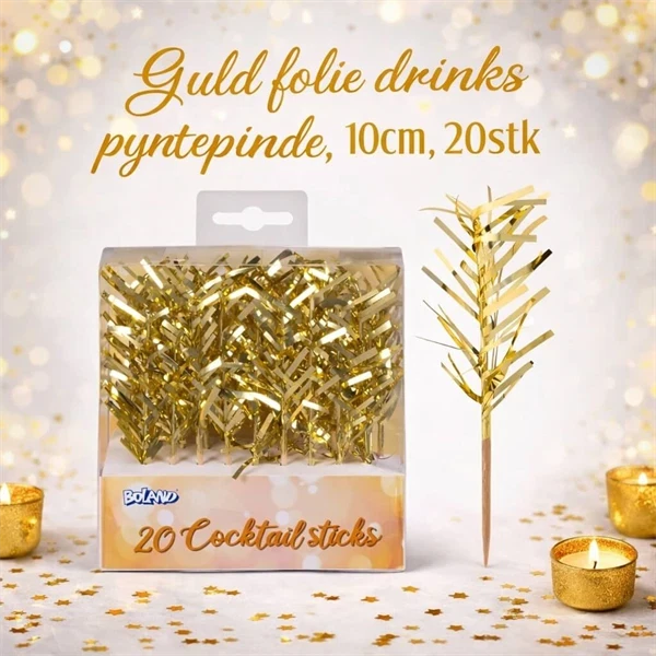 Guld Folie Drinks Pyntepinde – 10 cm (20 stk)