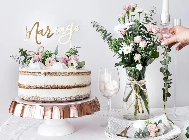 Den bruges som cake topper til at dekorere kager til bryllup og fest, så kagen får et elegant og professionelt udtryk.