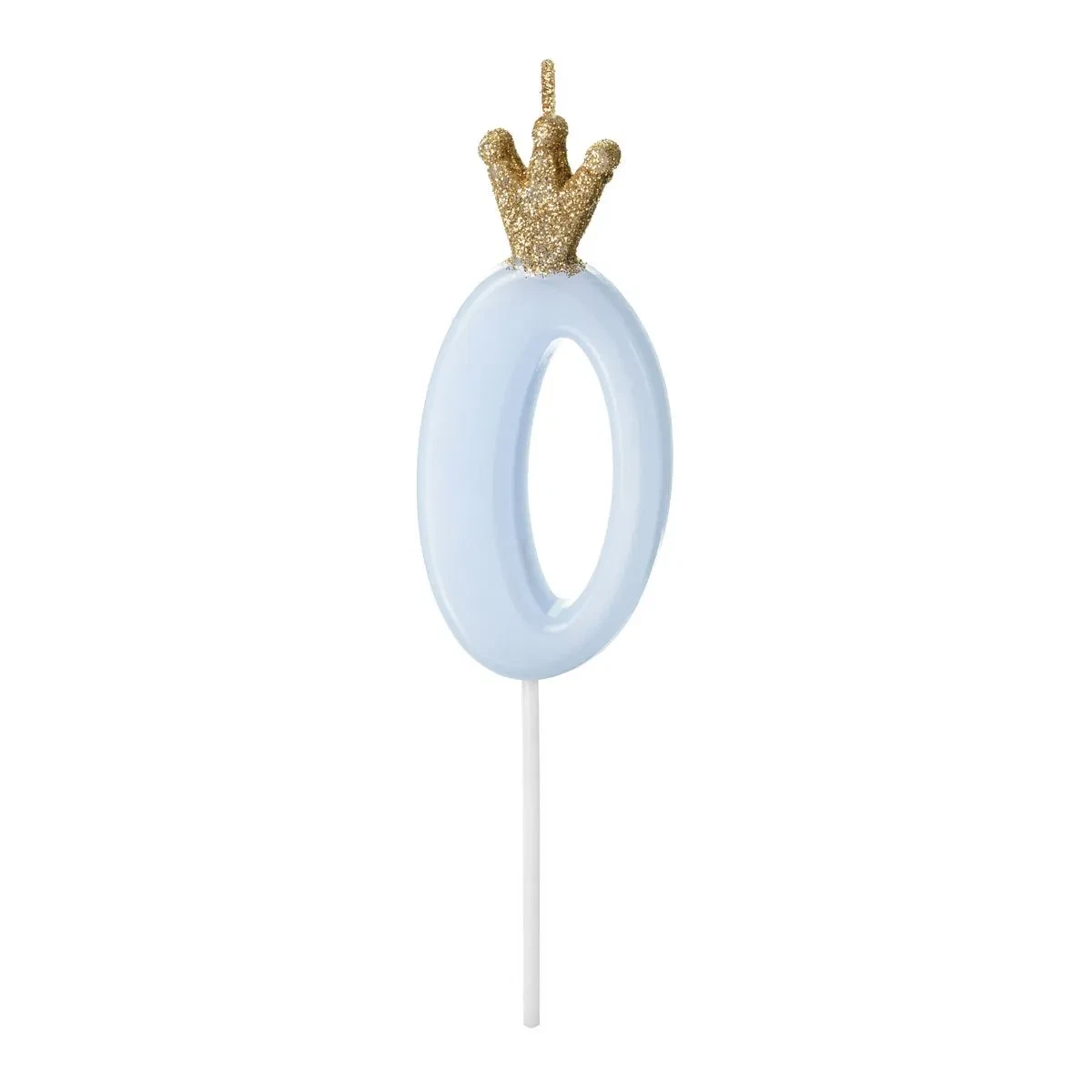 Kagelys Kongekrone tal 0 lyseblå/guld 9,5cm